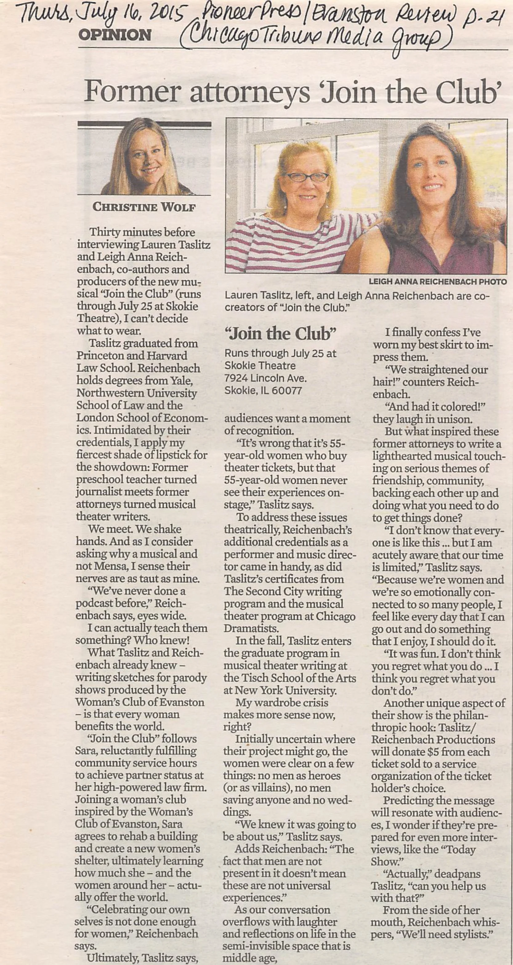 Former Attorneys ‘Join The Club’ by Christine Wolf, Chicago Tribune, 7/16/15. Shared with permission. Copyright Chicago Tribune LLC