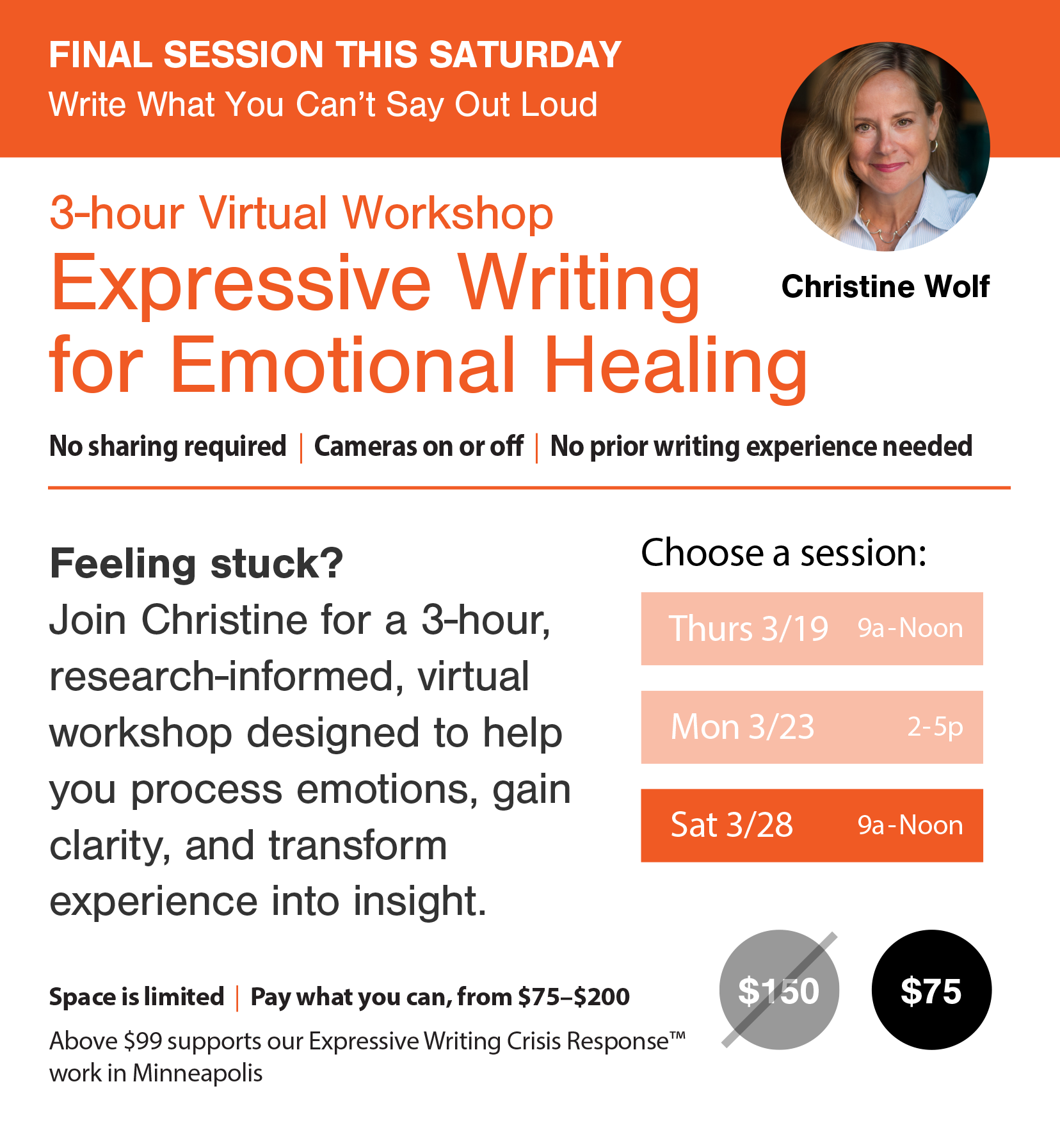 🕒 Choose from two, 3-Hour Virtual Workshops
